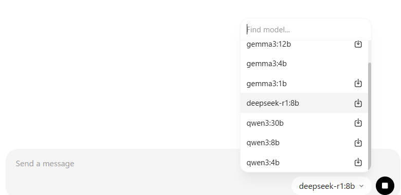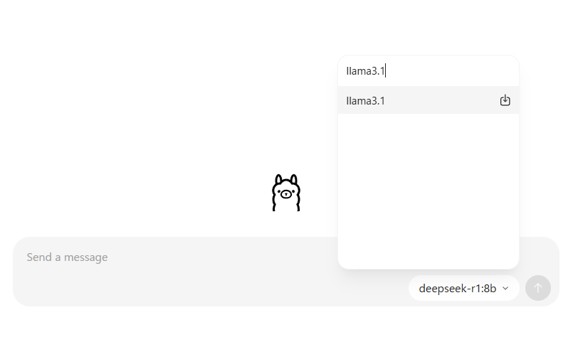 Ollamaのチャット欄右下のモデル選択の部分で↑を検索したら出てきたのでインストールしてみます。
