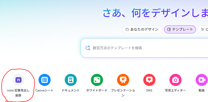 Canvaのテンプレートからさっくり作りたいので、以下、note記事見出し画像で作成します。